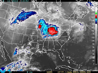 The pattern doesn’t seem to be changing much, with several pieces of energy traveling through theĀ longwave trof, keeping slight chances of precipitation for the area through much of remaining work week. Should keep mostly cloudy skies across the region, with a more sunny approach expected tomorrow. For now, the precipitation shield remains to our north, as originally thought. A very largeĀ MCC(Mesoscale Convective Complex) is to our north, dumping ample amounts of rain across IL and IN. You can see this system from the IR image below…