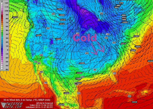 Sunshine and partly cloudy skies will help temperatures reach the upper 40’s today as the high pressure system in the Great Lakes region continues to push eastward. Look for clouds to increase as the day progresses and conditions to become progressively worse from Saturday night on. Winds will shift to a southwesterly flow later today followed by a small disturbance pushing through tonight and with it a small scattered amount of precipitation is expected. Southwesterly winds will greet Saturday and help temperatures rise above 50 degrees in the afternoon but cloudiness will vary across the region, so if the sun is able to peak out of the clouds for an extended period of time we could see temperatures reach the mid-50’s. Arctic air will push in from the northwest again later Saturday bringing the chance of light precipitation on Saturday night. As of now our region is in a Winter Storm Watch and could see significant ice and snow accumulations Sunday night into Monday. However, not much will be said about the upcoming event because forecast are still very uncertain. This potential winter weather maker is still off the coast of California, so it has not yet been sampled well enough for our Numerical Models. Current models now do a have a low pressure system tracking northeast from Texas to off the coast of the Carolinas. The QPF model shows a heavy amount of precipitation falling during this event, reaching above 2in, but sleet/snow/ice amounts will vary greatly depending on the thermodynamic set up as the system progresses through.